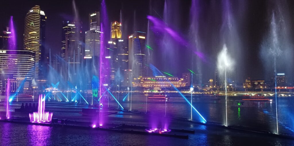 マリーナベイ・サンズの「スペクトラ」と、ガーデンズ・バイ・ザ・ベイの「ガーデン・ラプソディー」を見ました。
